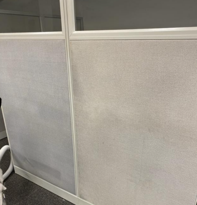 Our tools for cleaning upholstery can brighten up a wide variety of textiles. Check out this before and after photo of a recent job we completed for cleaning fabric on some office cubicles! What a difference!